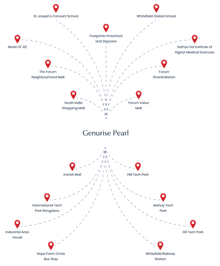 Situated on Whitefield Main Road, Genurise Pearl offers contemporary living in one of Bangalore’s most sought-after locations. The project features well-designed 1, 2, and 3 BHK homes set within expansive open spaces. Lifestyle amenities such as swimming pools, sports facilities, landscaped gardens, and community zones cater to all age groups. With close proximity to schools, hospitals, IT hubs, and retail destinations, Pearl ensures everyday convenience. It is a perfect blend of comfort and connectivity.